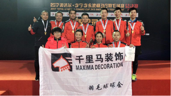 12月2-3日,“2017道達爾李寧李永波杯3v3羽毛球賽世界紀(jì)錄挑戰(zhàn)賽”團體賽在北京李寧中心隆重舉行,本次賽事共吸引了全國8000多位羽毛球愛好者積極參與,創(chuàng)下參賽人員最多的世界紀(jì)錄,比賽分為十多個組別,有3v3比賽,其中包括公開組、高校組及商學(xué)院組。深圳千里馬球會參加了35歲男團和混團兩個組別的比賽。 場館外天寒地凍,場內(nèi)熱火朝天,加油、吶喊聲不絕于耳。我們參加的比賽單局21分,一局決勝負,11分后雙方換場地,,打到21分后另一方必須勝2分才算獲勝,最多達到30分封頂,三盤贏兩盤即算勝方,2日是35歲混團比賽,我方隊員發(fā)揮敢打敢拼的精神,一路過關(guān)斬將,沒有遇到太大的困難就挺進決賽,決賽對手是在業(yè)余羽毛球界同樣有名的上海麗仁股分隊,對手實力不俗,我方主力隊員倪超大腿受傷的情況下以大比分1:2屈居亞軍。 3日是男團比賽,為了拿到渴望已久的冠軍,我們早早來到場地適應(yīng)燈光及風(fēng)向,為即將到來的大戰(zhàn)做好充分準(zhǔn)備,經(jīng)過較量,千里馬戰(zhàn)隊順利進入決賽,就像約定好的一樣,顧總的麗仁股分隊如愿與我們會師決賽,論實力,我們混團和麗仁股混團旗鼓相當(dāng),誰輸誰贏全憑臨場發(fā)揮,而論男團實力,我們還是自認為略勝麗仁股一籌,兩場同時開球,我們的一雙是林桂寶和郭貽帥,二雙是韓束光和龍俊,我們的四個隊員都是在業(yè)余羽毛球界大名鼎鼎的人物,比賽中,他們穩(wěn)打穩(wěn)扎和對手比拼實力和基本功,比賽都是按著我們的節(jié)奏在打,兩場比賽均勝對手幾分,大比分2:0 贏得比賽。
