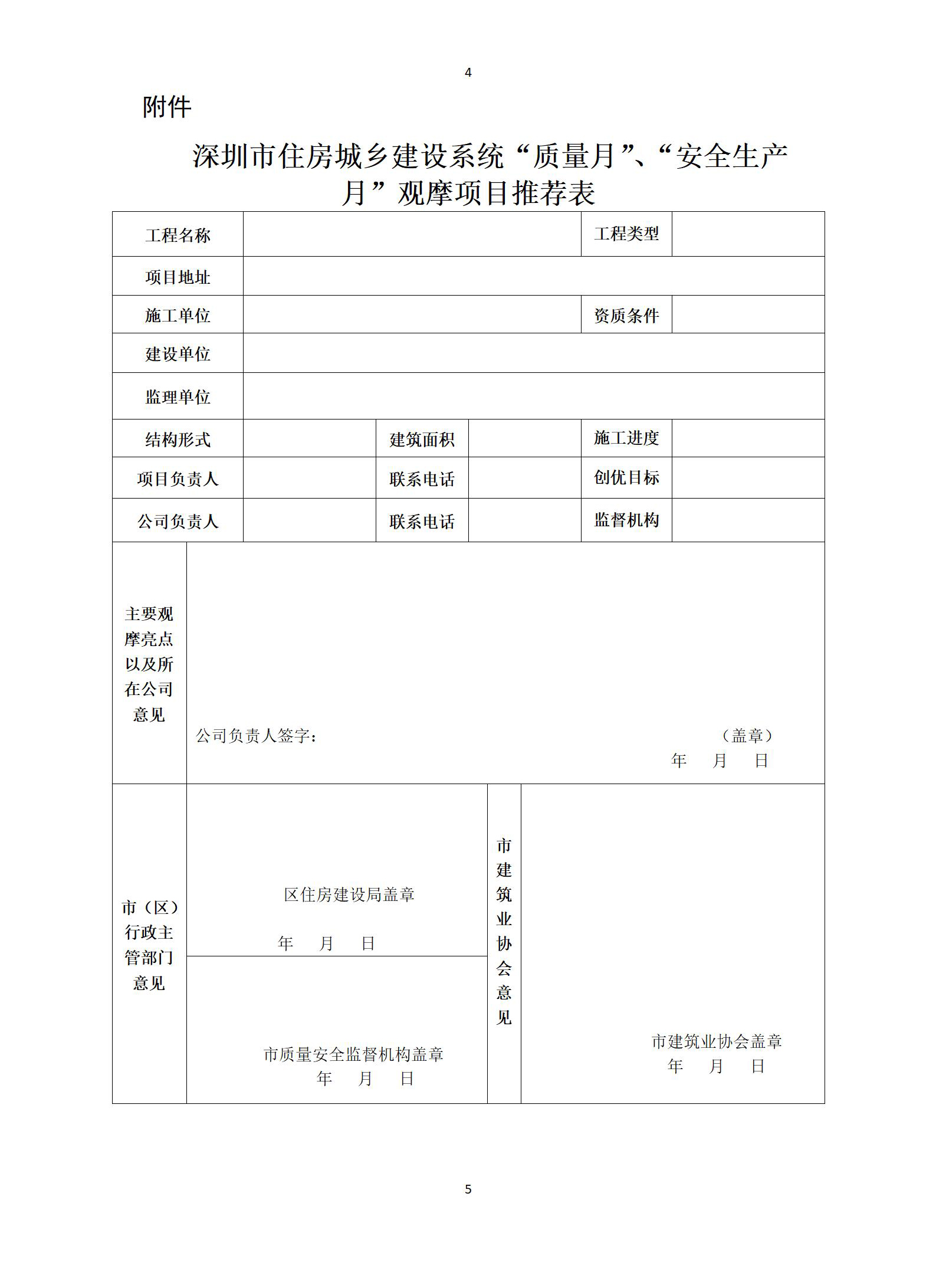 為進(jìn)一步提升工程建設(shè)水平,貫徹落實(shí)國(guó)家、省、市有關(guān)“質(zhì)量月”“安全生產(chǎn)月”“安全生產(chǎn)萬里行”活動(dòng)要求,全力筑牢工程安全質(zhì)量防線,規(guī)范深圳市住房和城鄉(xiāng)建設(shè)系統(tǒng)推薦“質(zhì)量月”“安全生產(chǎn)月”觀摩項(xiàng)目的管理工作。經(jīng)研究,我局制定了《深圳市住房和建設(shè)局關(guān)于推薦住房和城鄉(xiāng)建設(shè)系統(tǒng)“質(zhì)量月”“安全生產(chǎn)月”觀摩項(xiàng)目工作指引(試行)》?,F(xiàn)予以印發(fā),請(qǐng)認(rèn)真貫徹執(zhí)行。